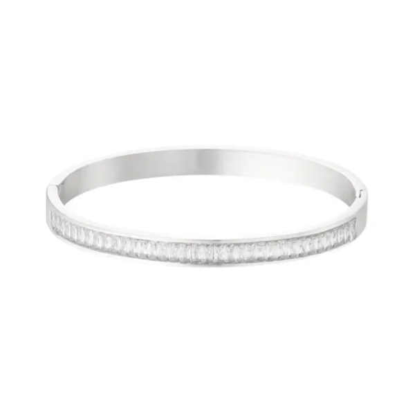 Slavenarmband gesloten met blinkende steentjes. Staineless steel en nikkelvrij. Combineer het met meerdere armbandjes, goud of met kleurtjes.