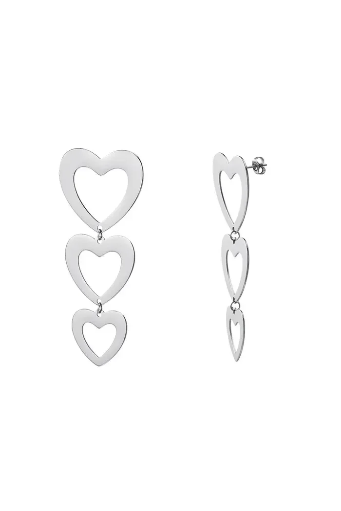 Een trio van harten, van glad materiaal. Deze oorbellen zijn neit al te zwaar, dus altijd te dragen. Een juweeltje voor het oog!