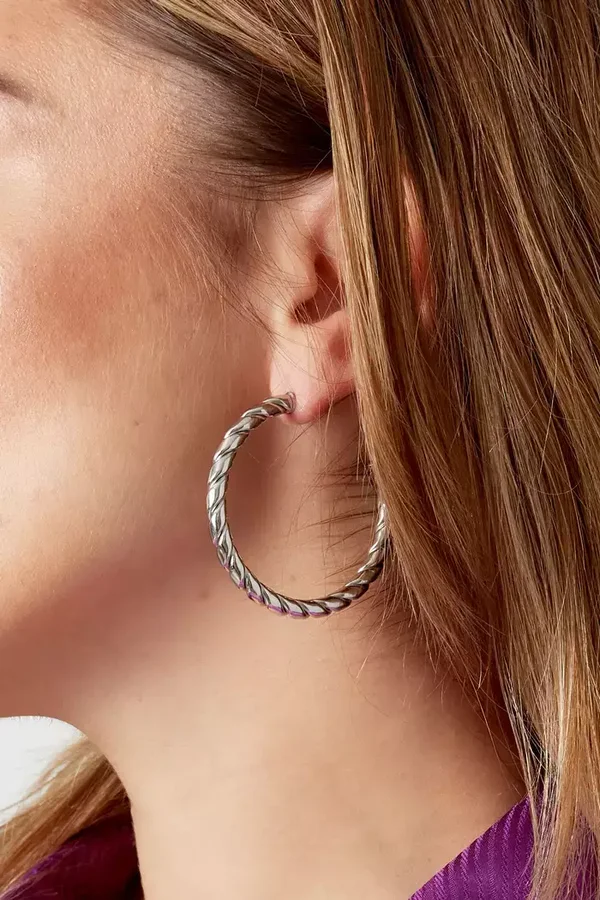 Musthave alert! Hoe leuk zijn deze oorbellen met een prachtig gedraaide print! Mega trendy en daarnaast perfect te stylen met meerdere oorbellen; zo kun jij jouw ideale ear party creëren. Daarnaast kun je deze oorbellen ook leuk dragen in combinatie met meerdere sieraden. De oorbellen zijn gemaakt van stainless steel en hebben een afmeting van 5 cm. Verkrijgbaar in de kleuren goud en zilver.